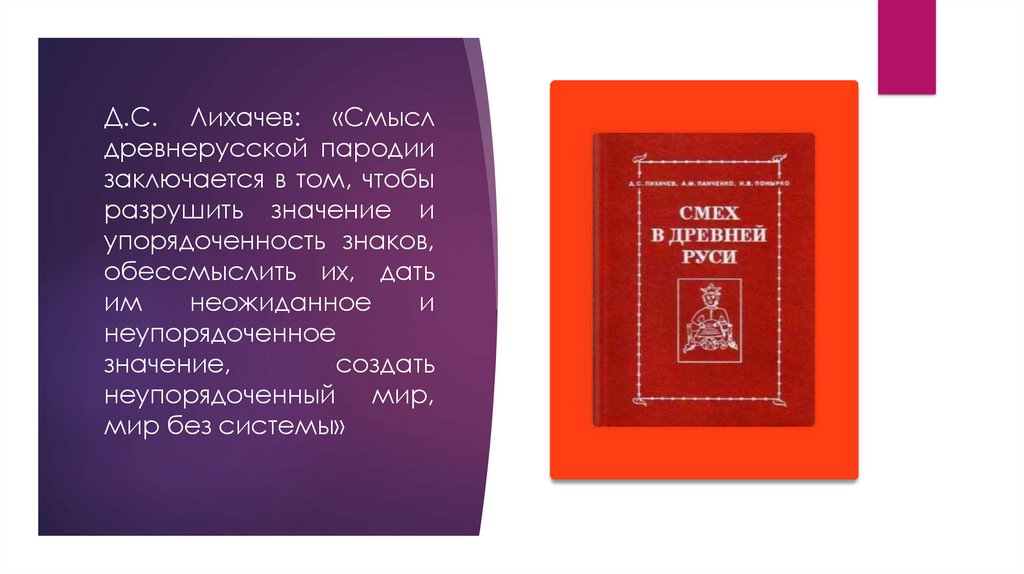 Д.С. Лихачев: «Смыслдревнерусской пародии