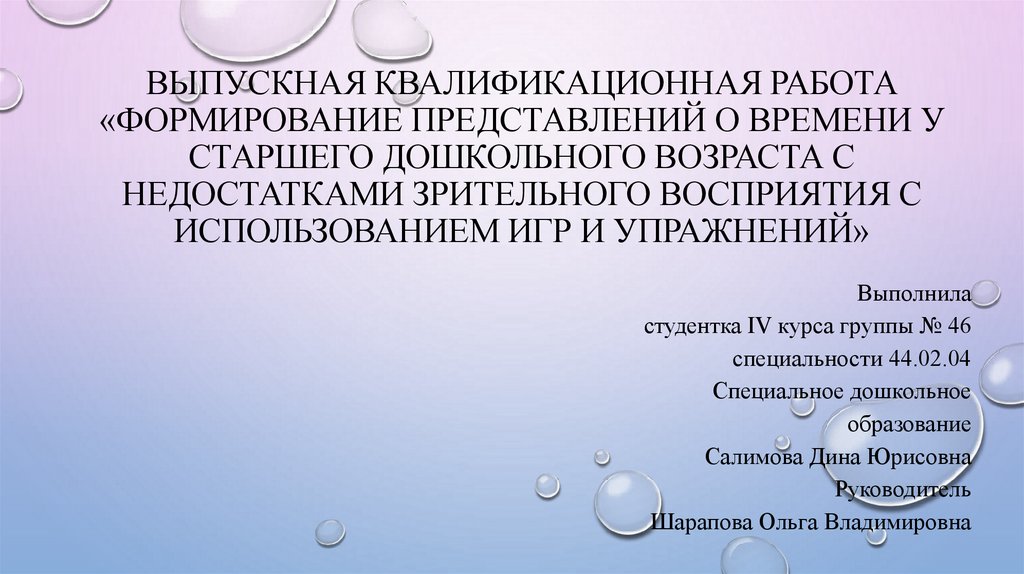 Выпускная квалификационная работа «формирование представлений о времени у старшего дошкольного возраста с недостатками