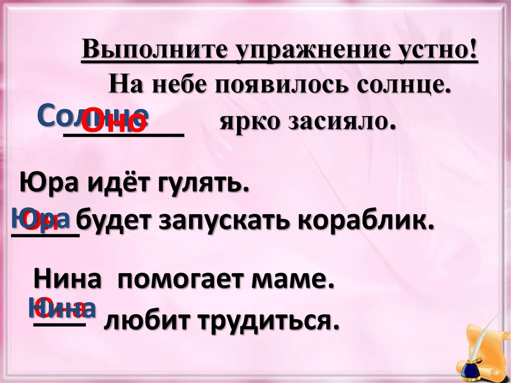 Выполните упражнение устно!На небе появилось солнце.