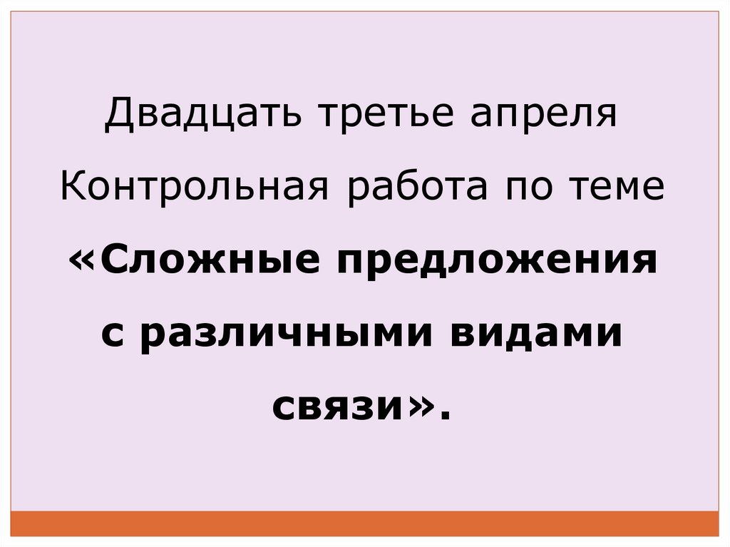 Двадцать третье апреляКонтрольная работа по теме