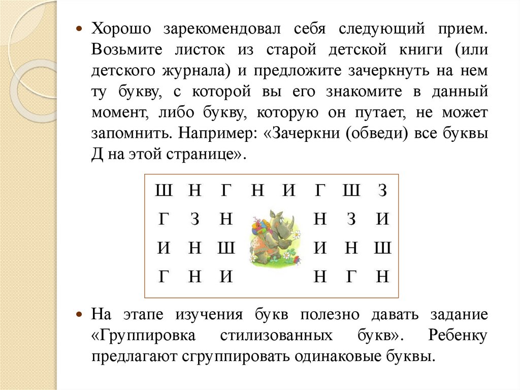 букв», «Найди нужную букву среди перечеркнутых