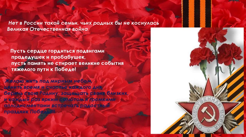 Нет в России такой семьи, чьих родных бы не коснуласьВеликая Отечественная война.