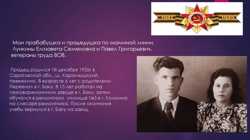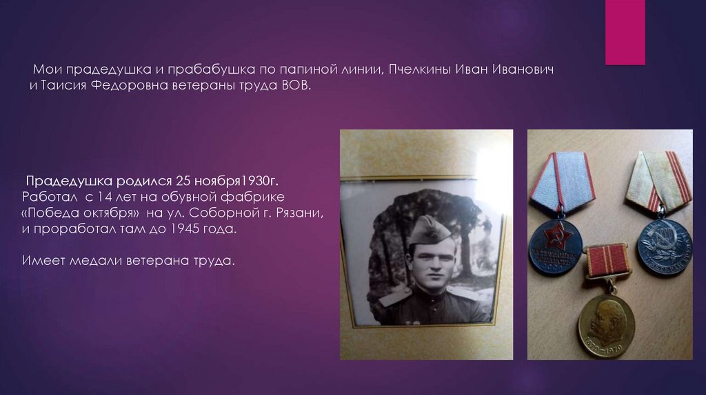 Мои прадедушка и прабабушка по папиной линии, Пчелкины Иван Ивановичи Таисия Федоровна ветераны труда ВОВ.