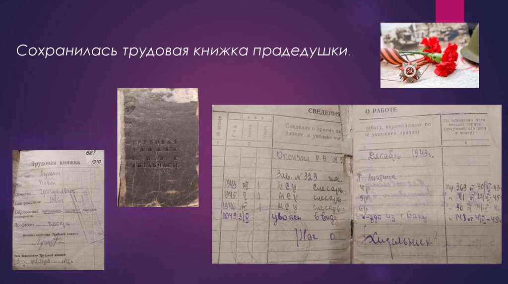 Сохранилась трудовая книжка прадедушки.5.