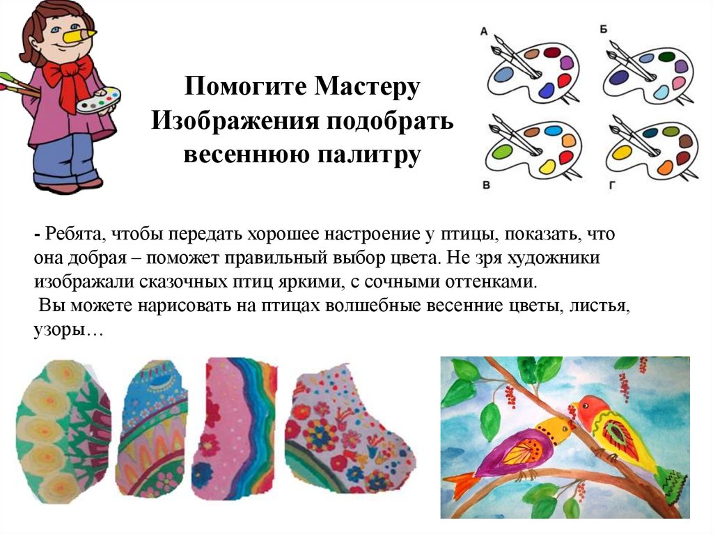 - Ребята, чтобы передать хорошее настроение у птицы, показать, что