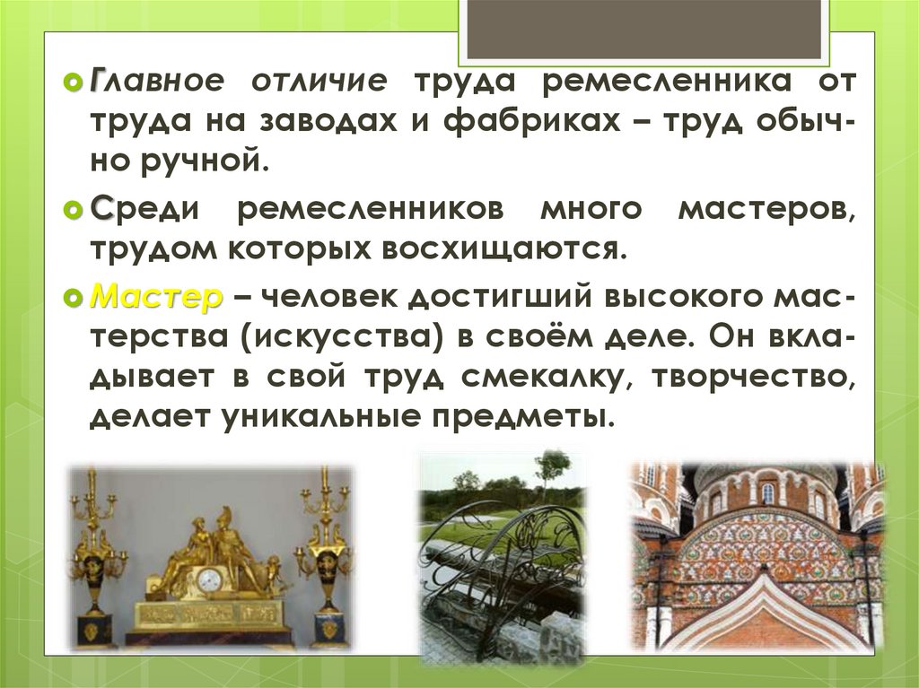 1. Трудовая деятельность человека.2. Мастер и ремесленник.