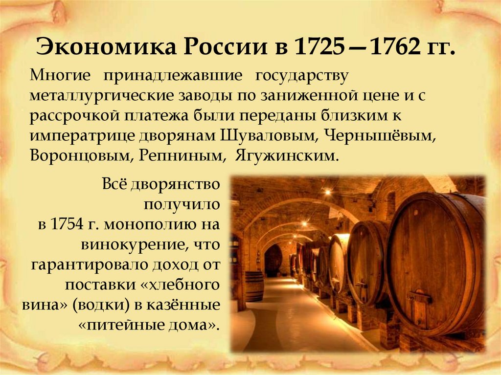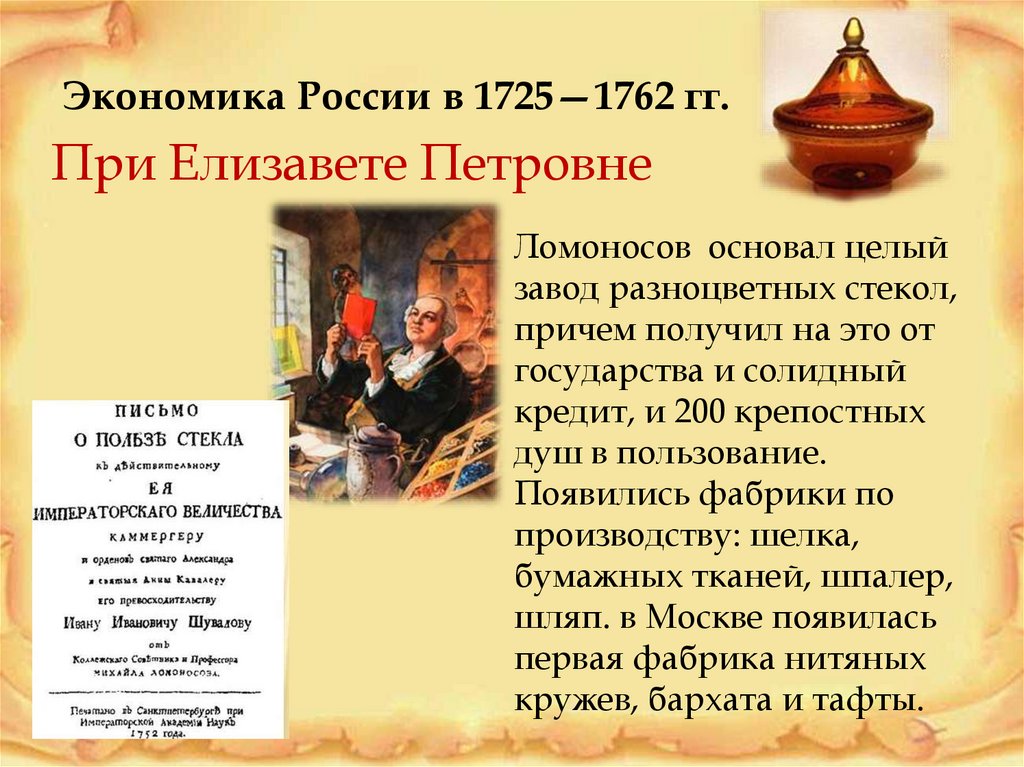 Экономика России в 1725—1762 гг.При Елизавете Петровне