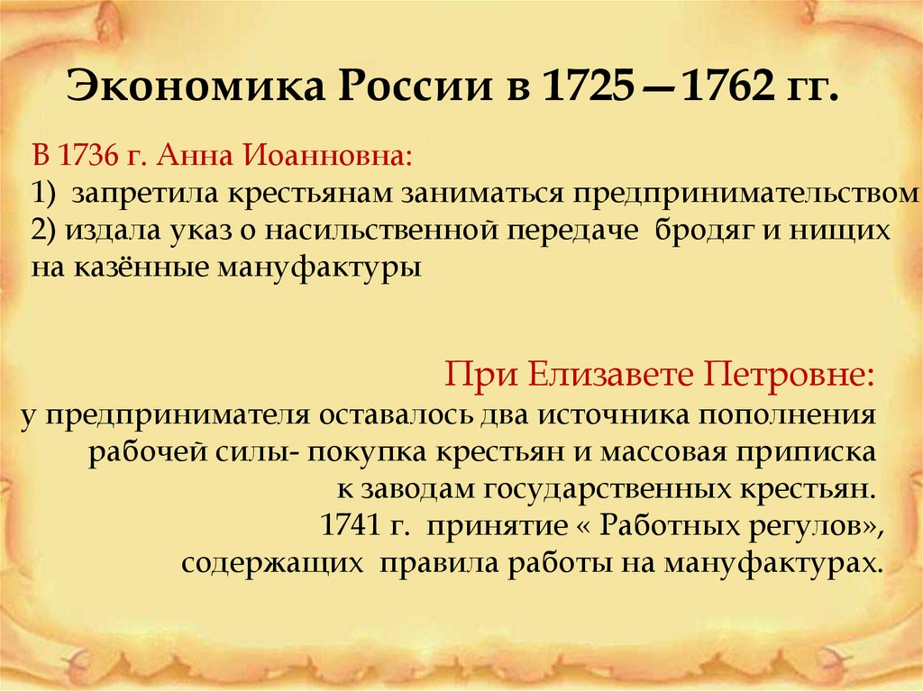 Экономика России в 1725—1762 гг.В 1736 г. Анна Иоанновна: