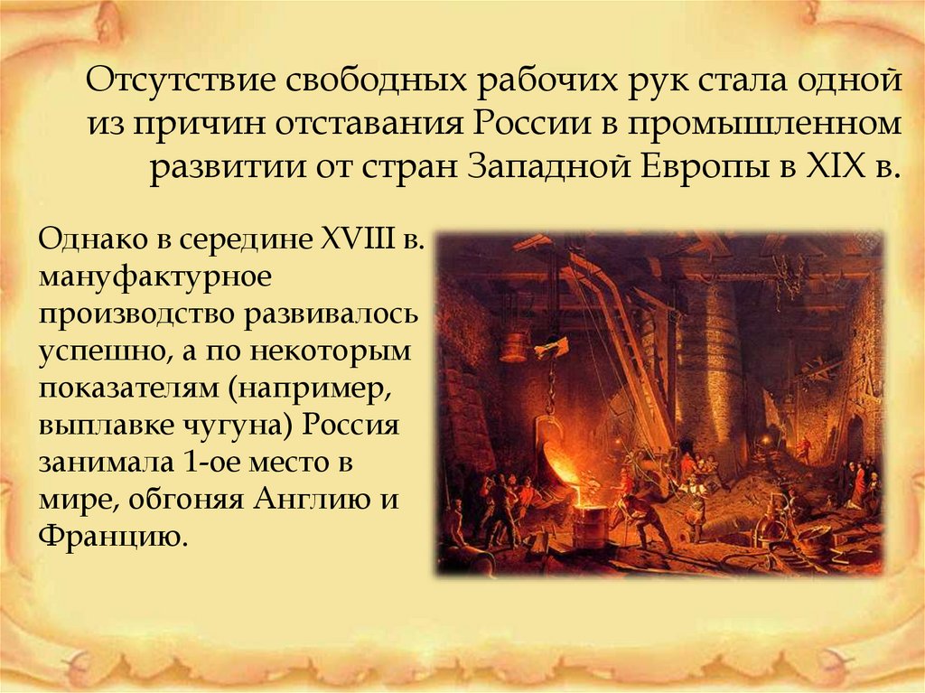 Отсутствие свободных рабочих рук стала однойиз причин отставания России в промышленном