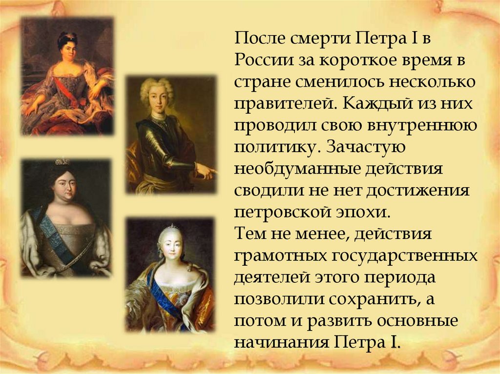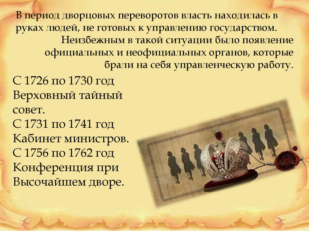 В период дворцовых переворотов власть находилась вруках людей, не готовых к управлению государством.