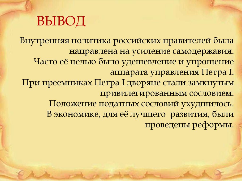 1. Внутренняя политика и экономика России 1725 – 1762 гг.
