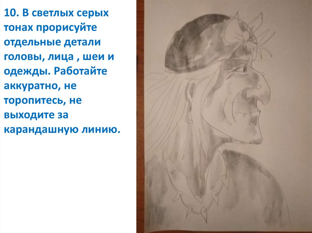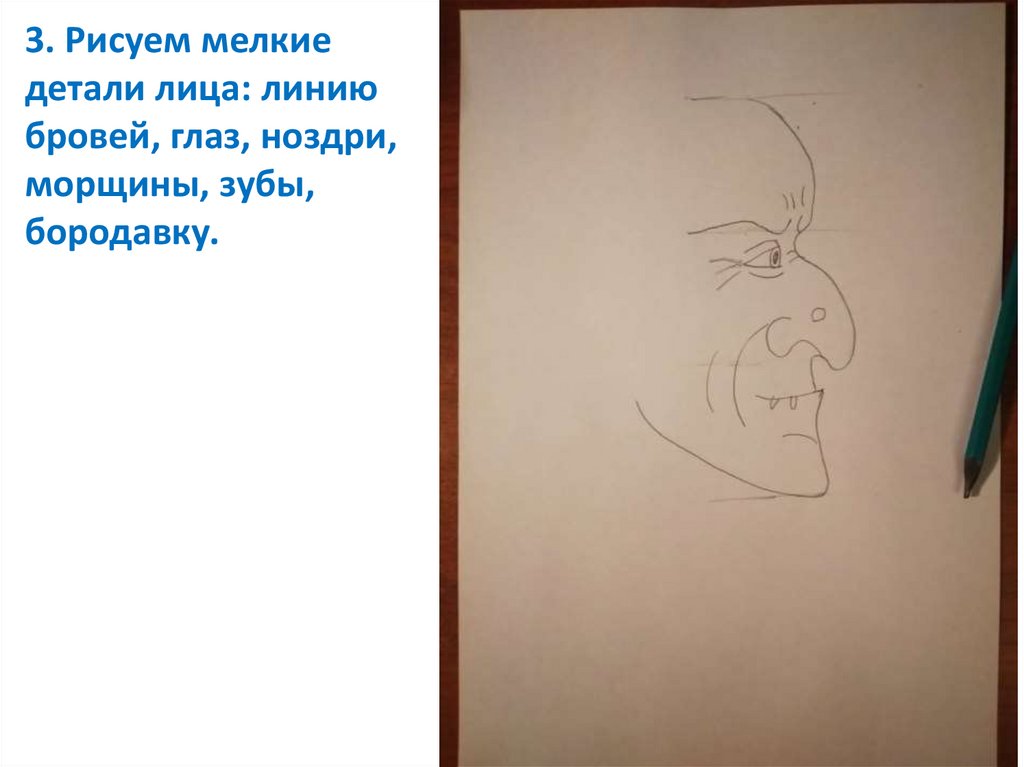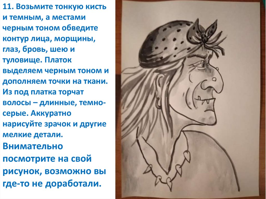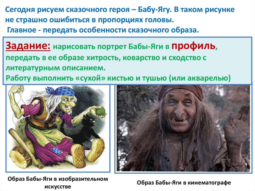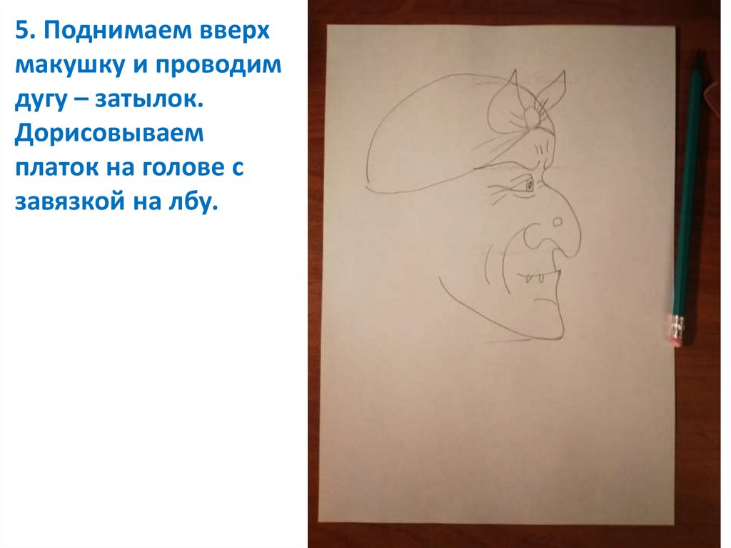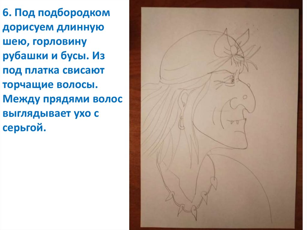 Задание: нарисовать портрет Бабы-Яги в профиль,