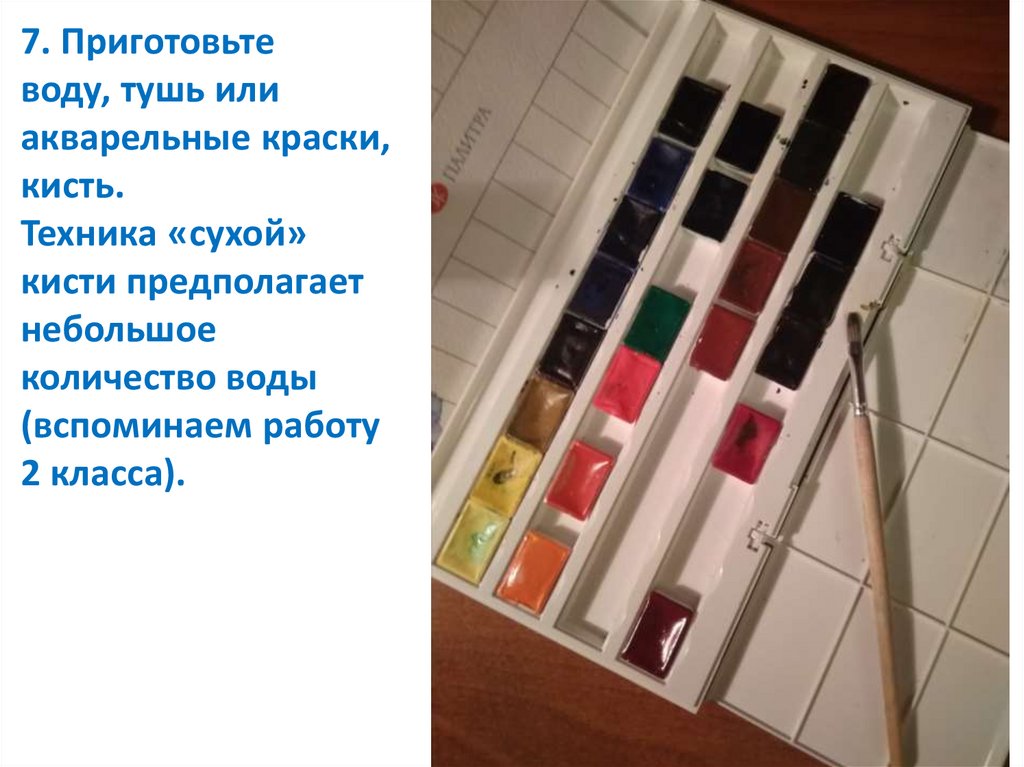 Работу выполнить «сухой» кистью и тушью (или акварелью)