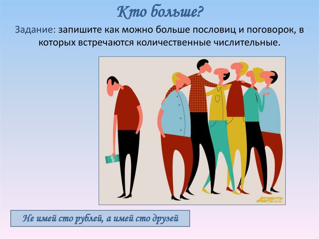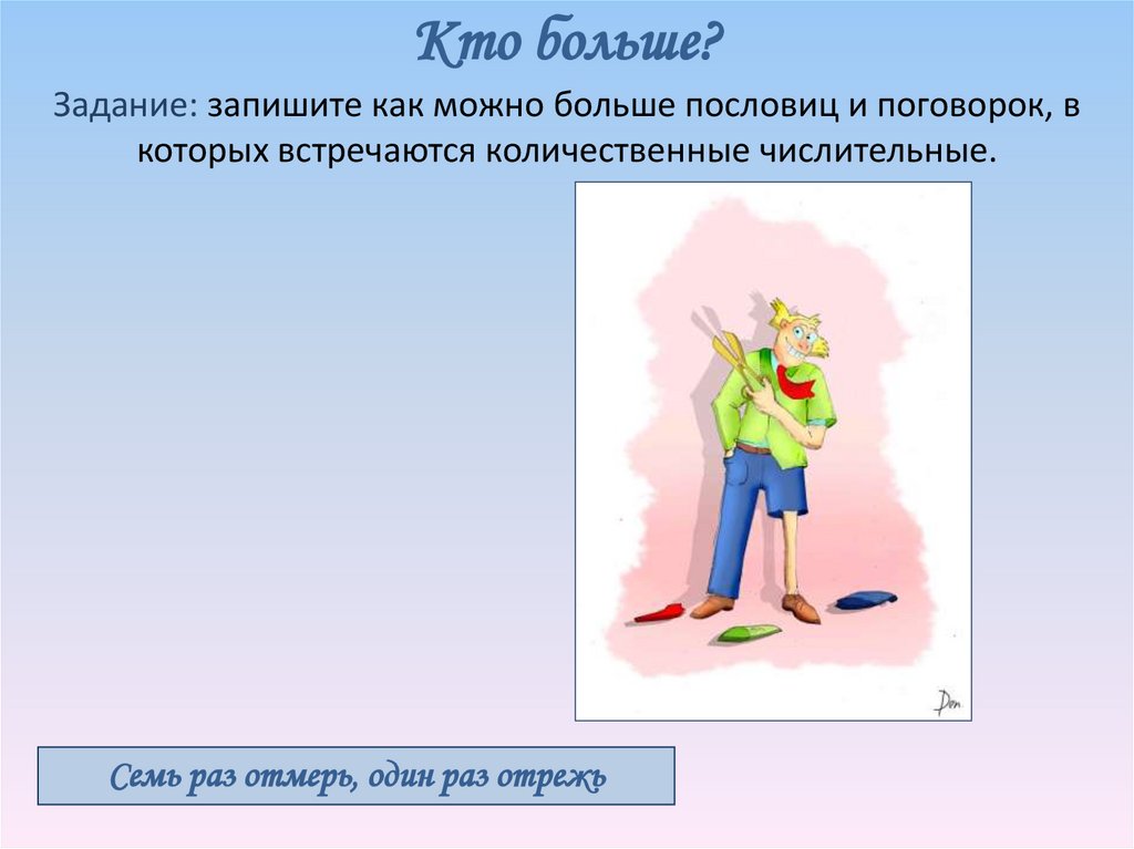 Кто больше?Задание: запишите как можно больше пословиц и поговорок, в