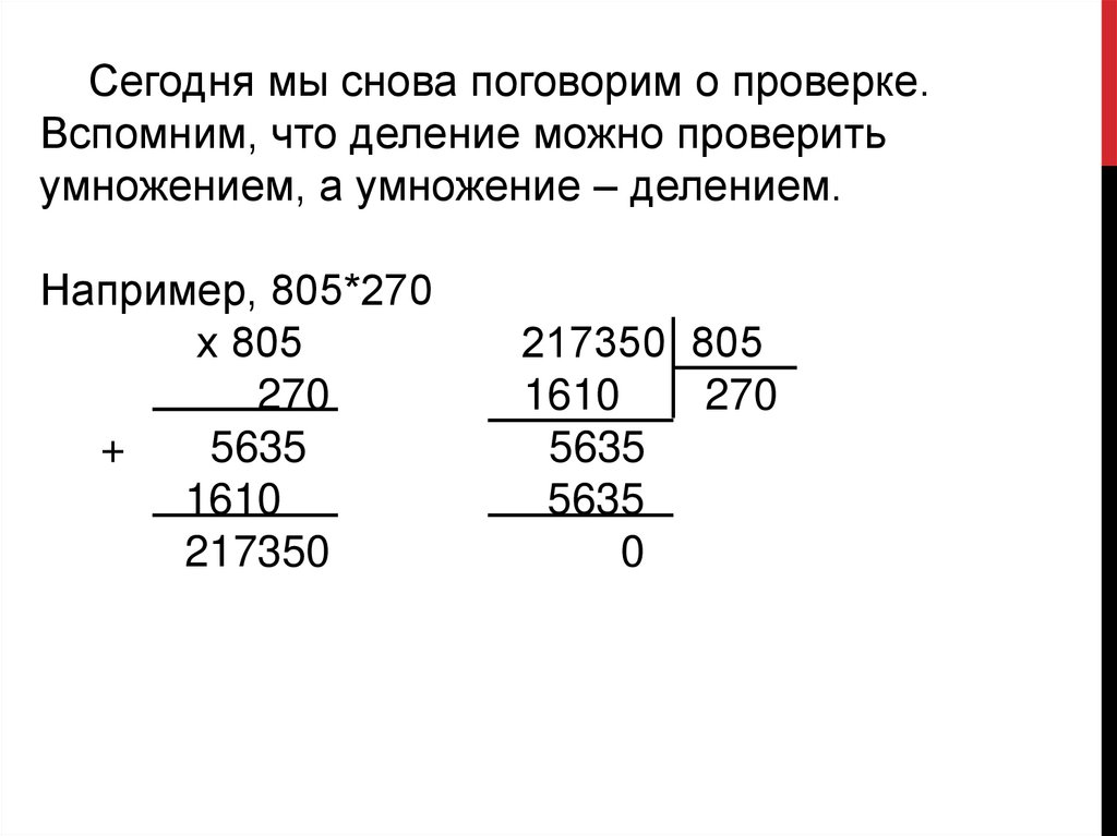 Сегодня мы снова поговорим о проверке.Вспомним, что деление можно проверить