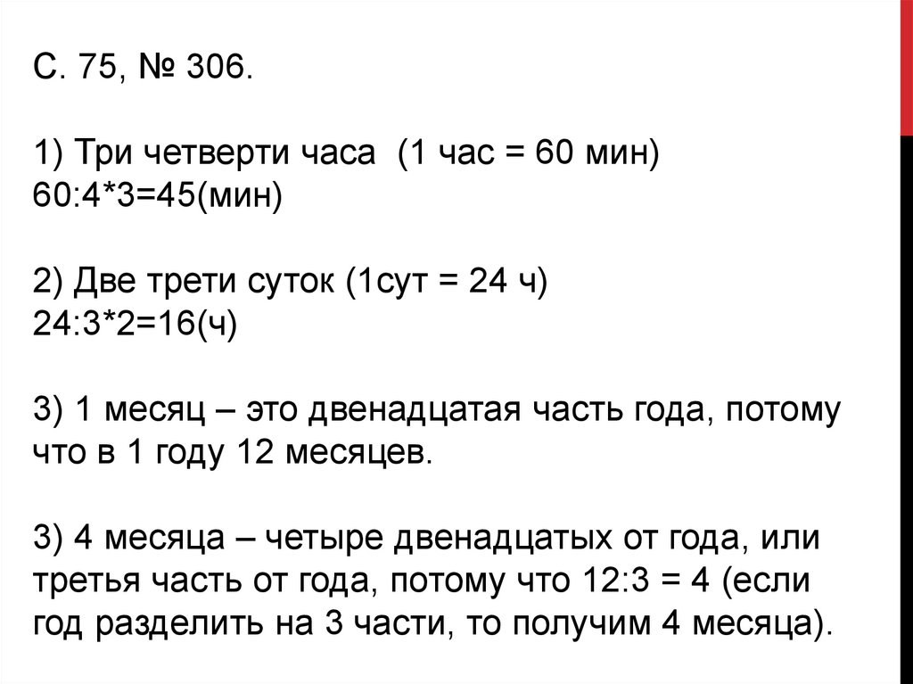 С. 75, № 306.1) Три четверти часа (1 час = 60 мин)
