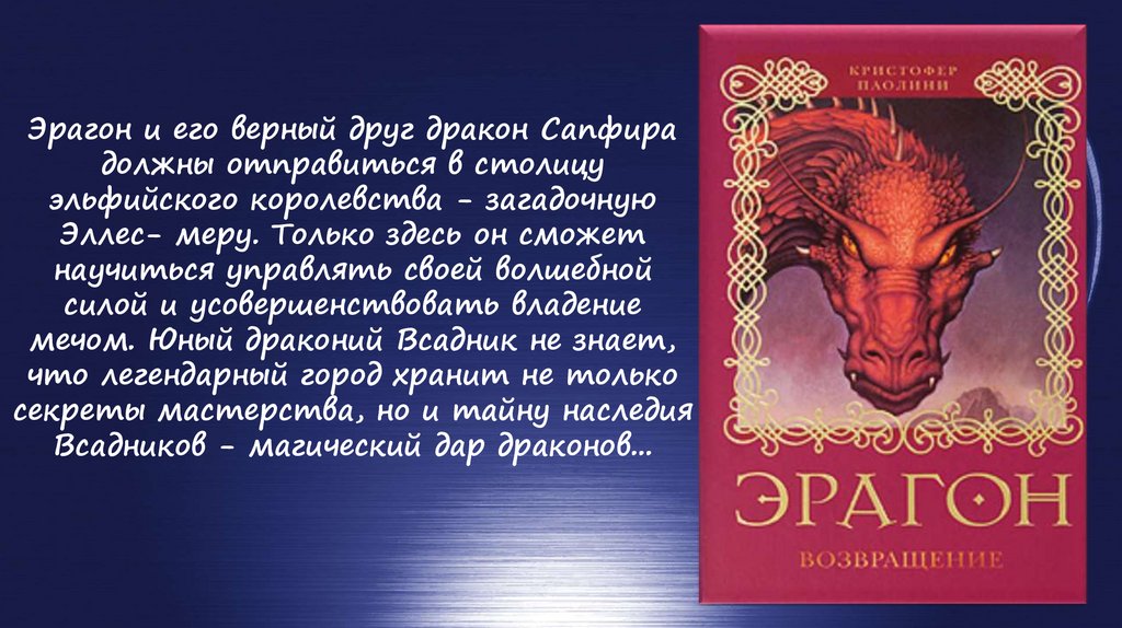 Эрагон и его верный друг дракон Сапфирадолжны отправиться в столицу