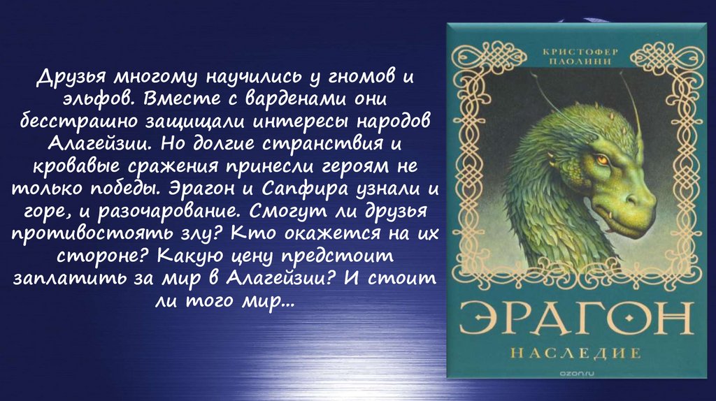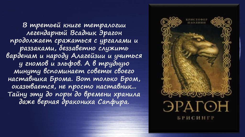 В третьей книге тетралогиилегендарный Всадник Эрагон
