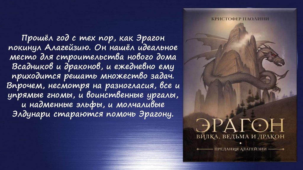 Прошёл год с тех пор, как Эрагонпокинул Алагейзию. Он нашёл идеальное