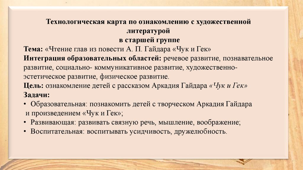 Тема: «Чтение глав из повести А. П. Гайдара «Чук и Гек»