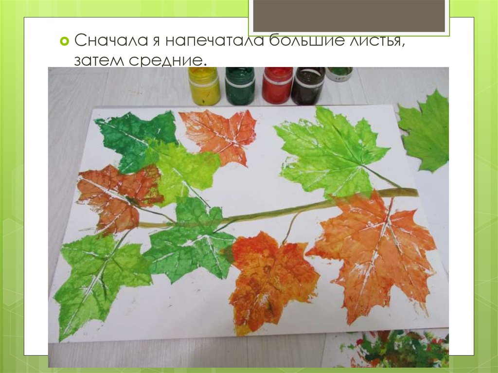 1. Нетрадиционная техника рисования - печатание листьев. Мастер– класс с пошаговым фото. Тема «Осенняя веточка»