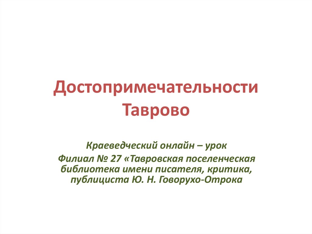Краеведческий онлайн – урокФилиал № 27 «Тавровская поселенческая