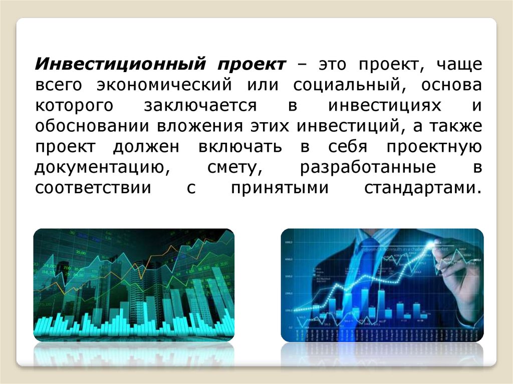 Инвестиционный проект – это проект, чащевсего экономический или социальный, основа