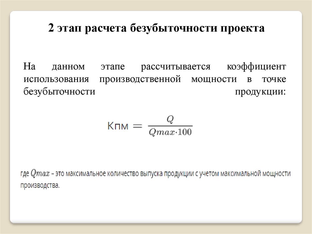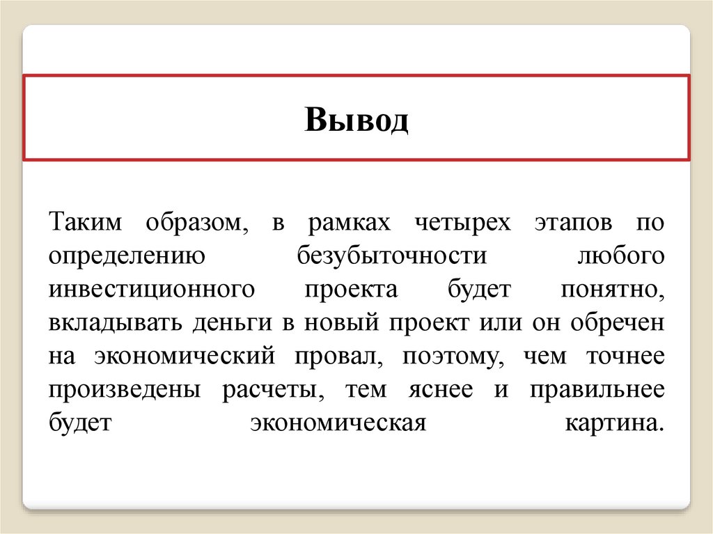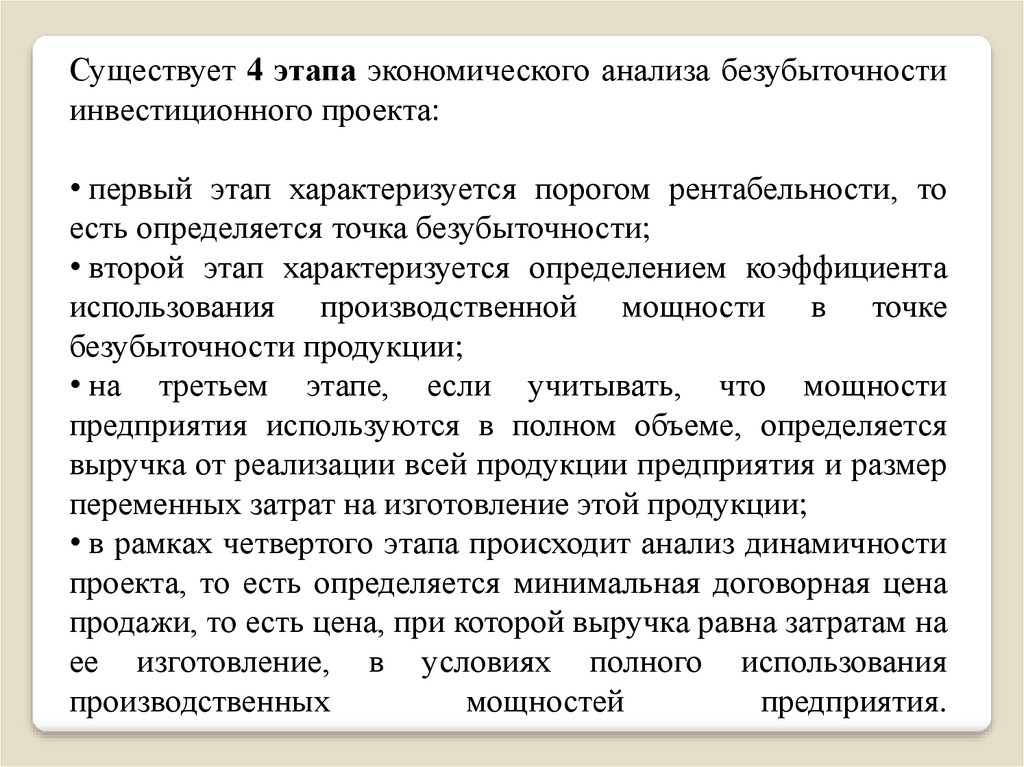 Существует 4 этапа экономического анализа безубыточностиинвестиционного проекта:
