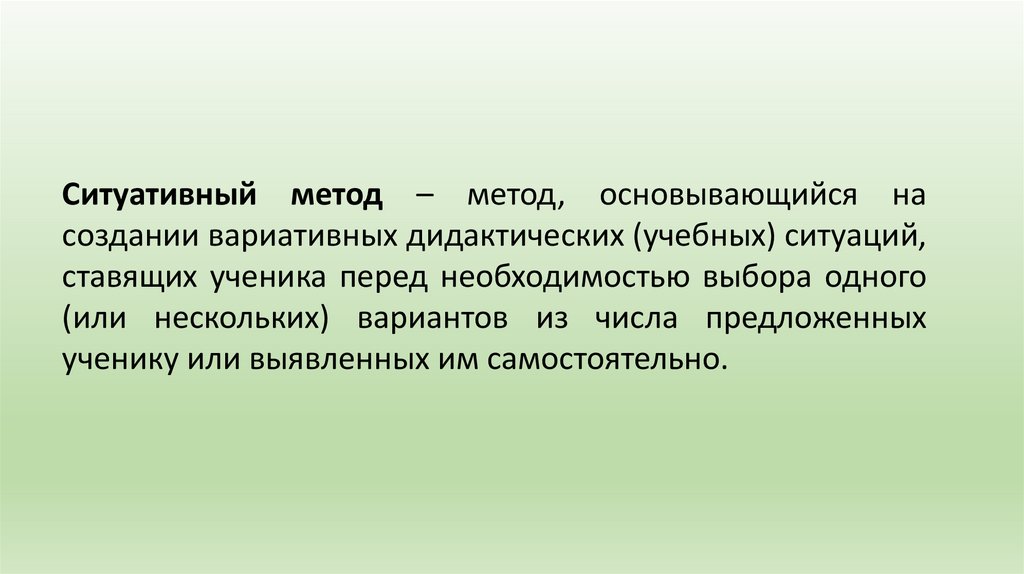 Ситуативный метод – метод, основывающийся насоздании вариативных дидактических (учебных) ситуаций,