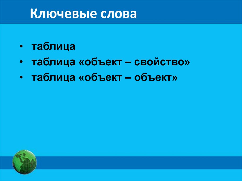 Ключевые слова• таблица