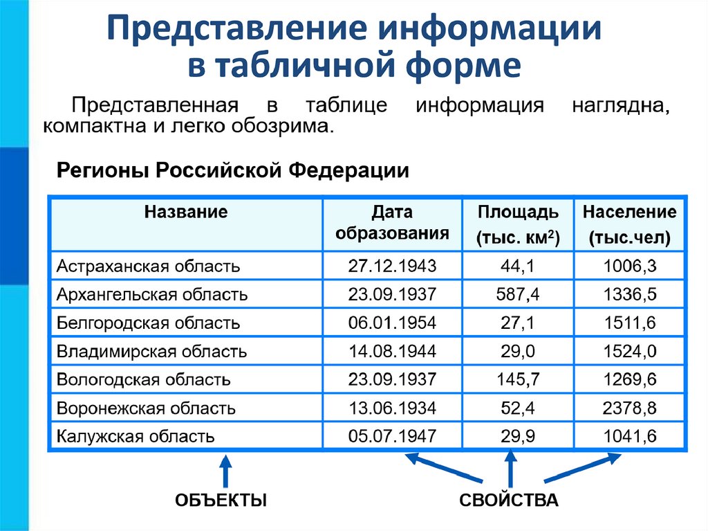 содержащая информацию о свойствах отдельных объектах,