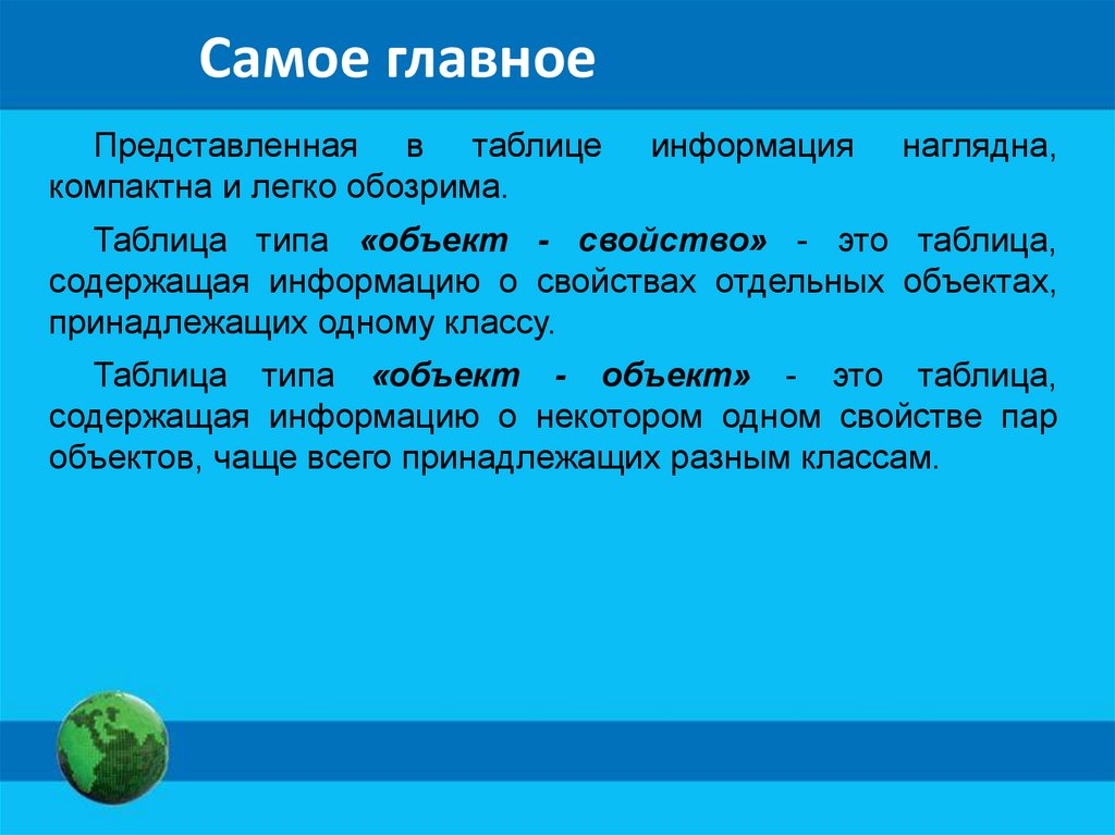 Самое главноеПредставленная в таблице