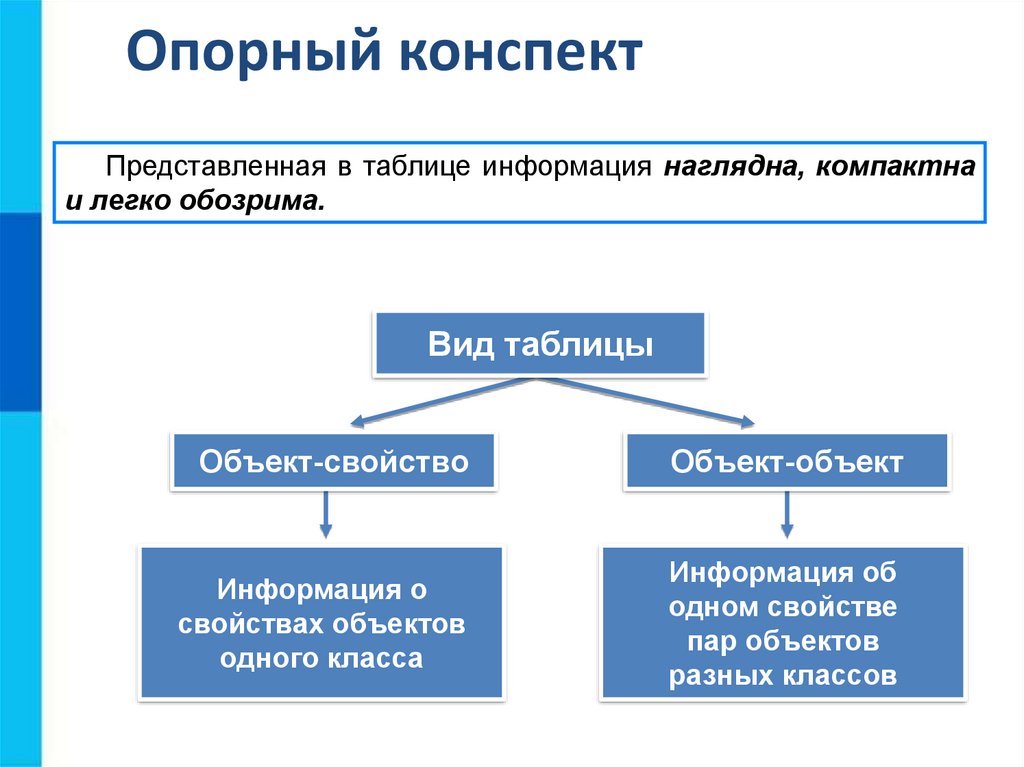 Опорный конспектПредставленная в таблице информация наглядна, компактна