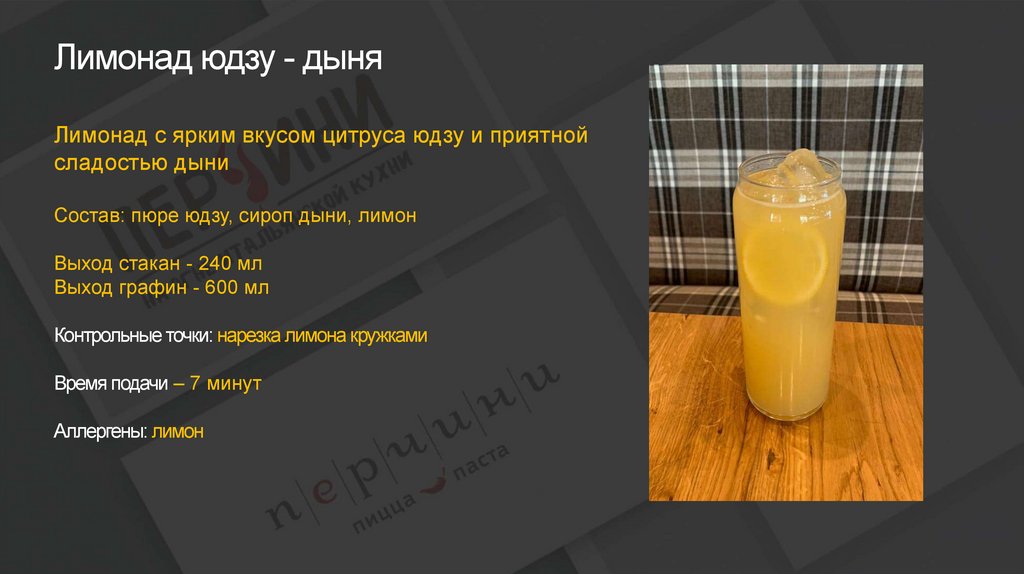 Лимонад юдзу - дыняЛимонад с ярким вкусом цитруса юдзу и приятной