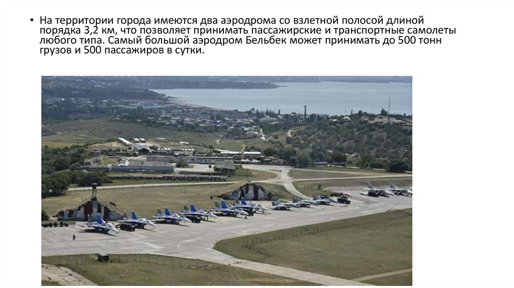 любого типа. Самый большой аэродром Бельбек может принимать до 500 тонн