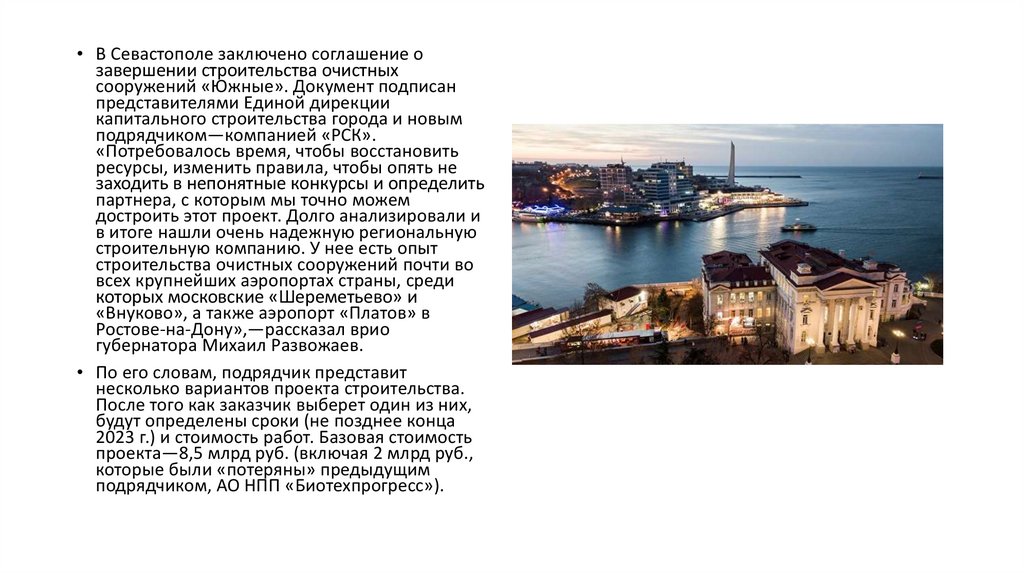 • Для Севастополя, как и для любого портового города России,строительство современных очистных сооружений—очень важная