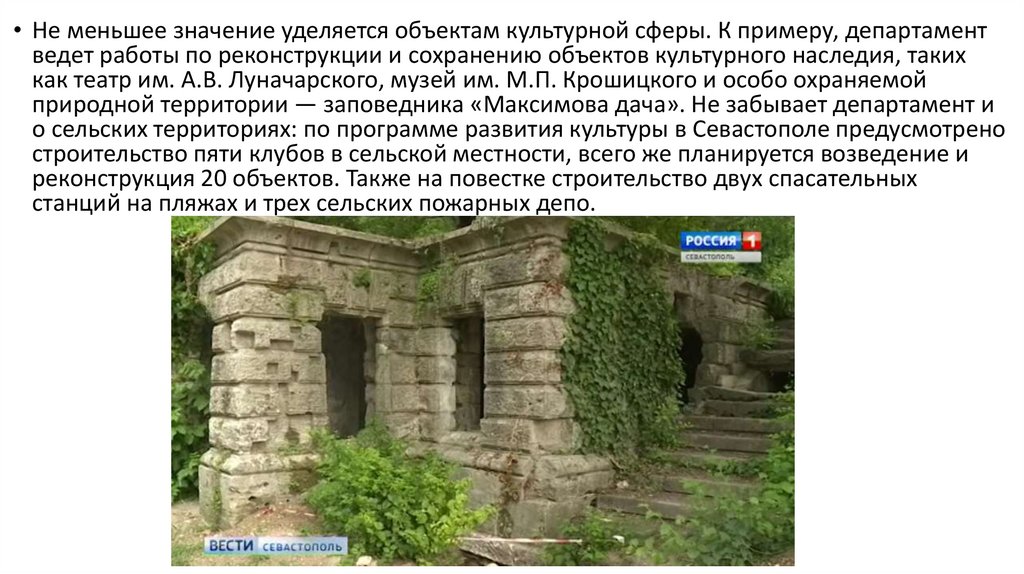 о сельских территориях: по программе развития культуры в Севастополе предусмотрено