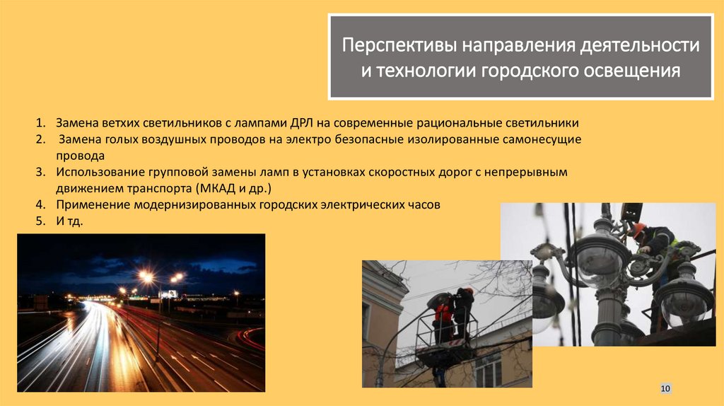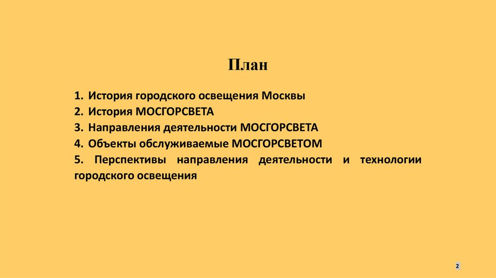 Направления деятельности Мосгорсвета1. Наружное электрическое освещение территории города
