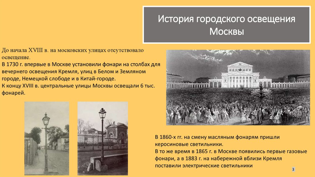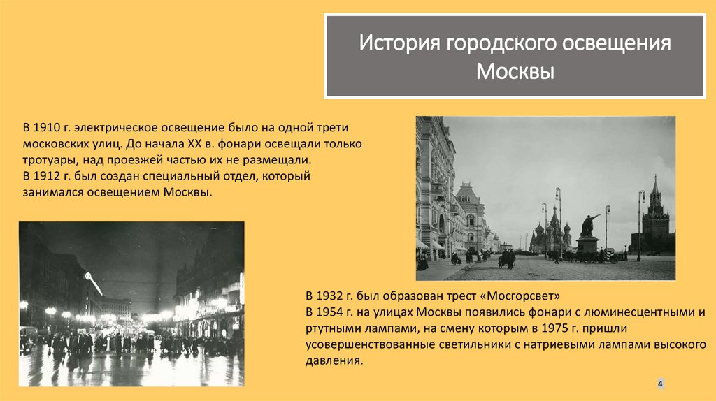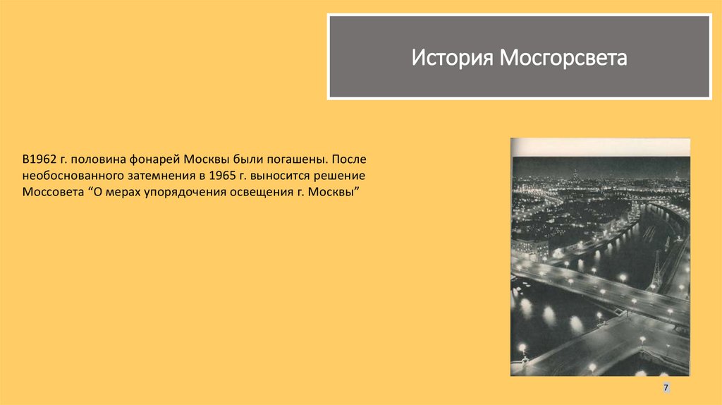 История МосгорсветаВ1962 г. половина фонарей Москвы были погашены. После
