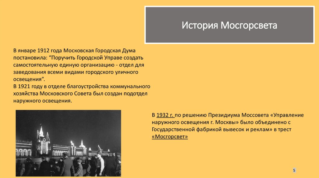 История МосгорсветаВ январе 1912 года Московская Городская Дума