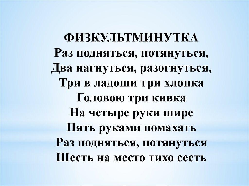 ФИЗКУЛЬТМИНУТКАРаз подняться, потянуться,