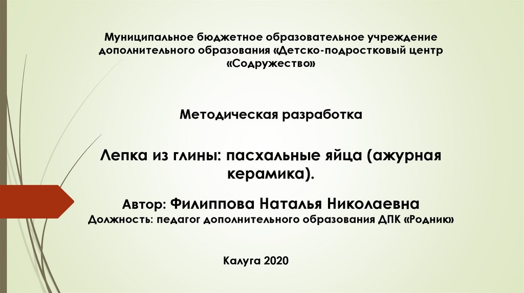 Должность: педагог дополнительного образования ДПК «Родник»