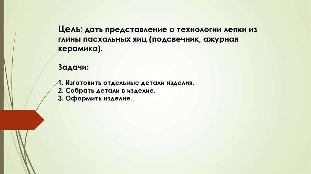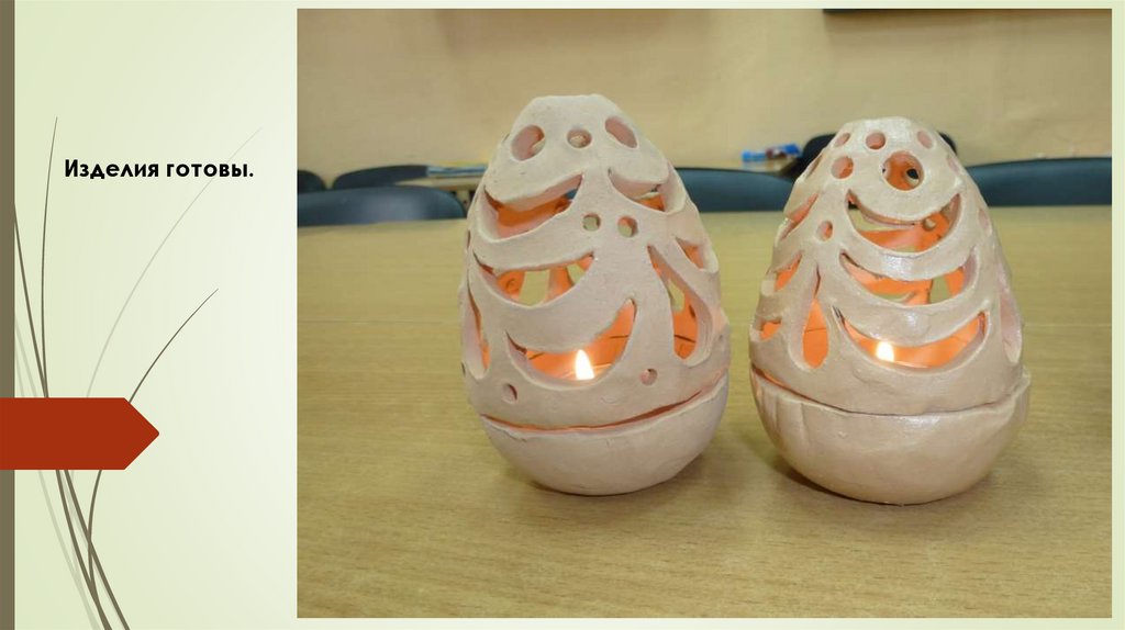 Цель: дать представление о технологии лепки изглины пасхальных яиц (подсвечник, ажурная