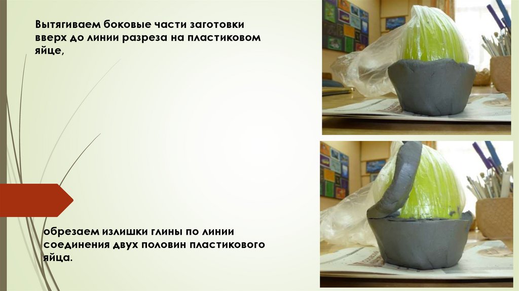 обрезаем излишки глины по линии