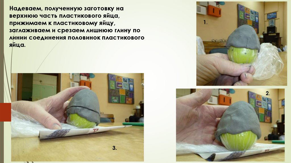 прижимаем к пластиковому яйцу,