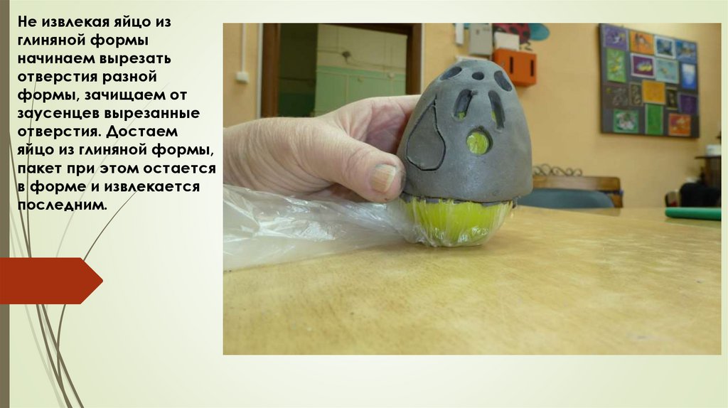 Не извлекая яйцо изглиняной формы