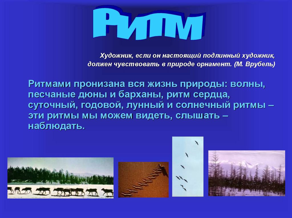 • Ритм придает динамику, ощущение движения в природе и