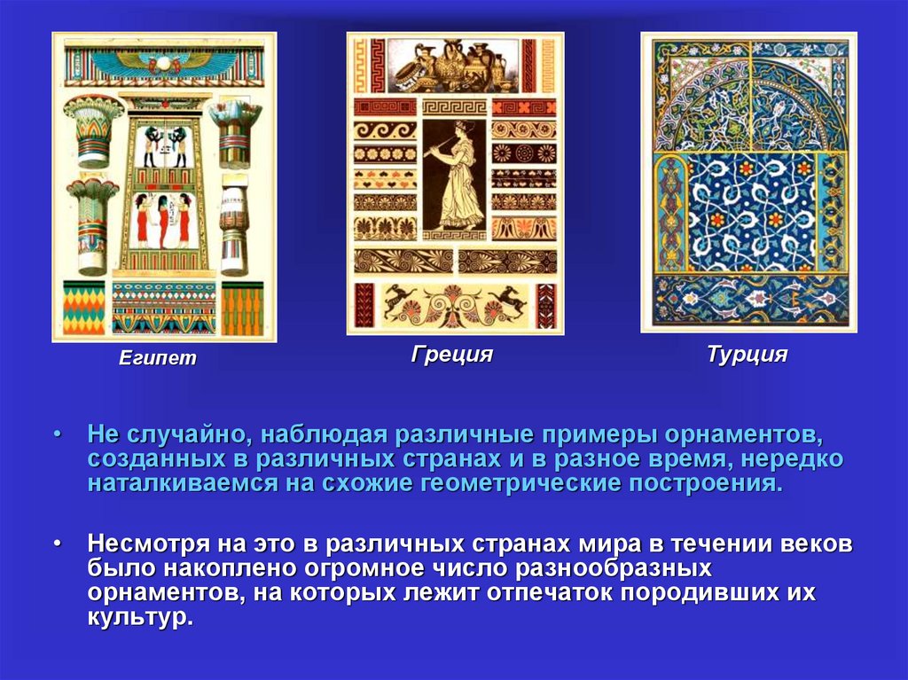 • Не случайно, наблюдая различные примеры орнаментов,