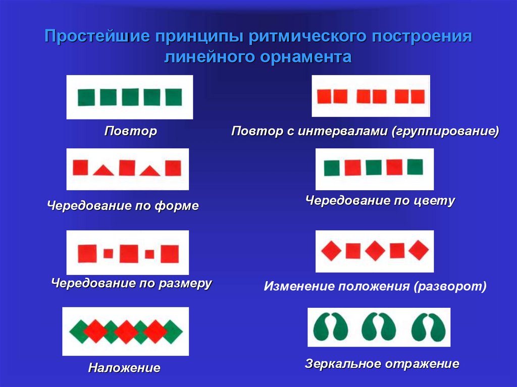 Простейшие принципы ритмического построениялинейного орнамента