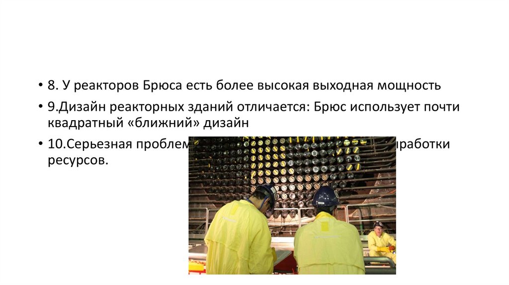 • 8. У реакторов Брюса есть более высокая выходная мощность• 9.Дизайн реакторных зданий отличается: Брюс использует почти